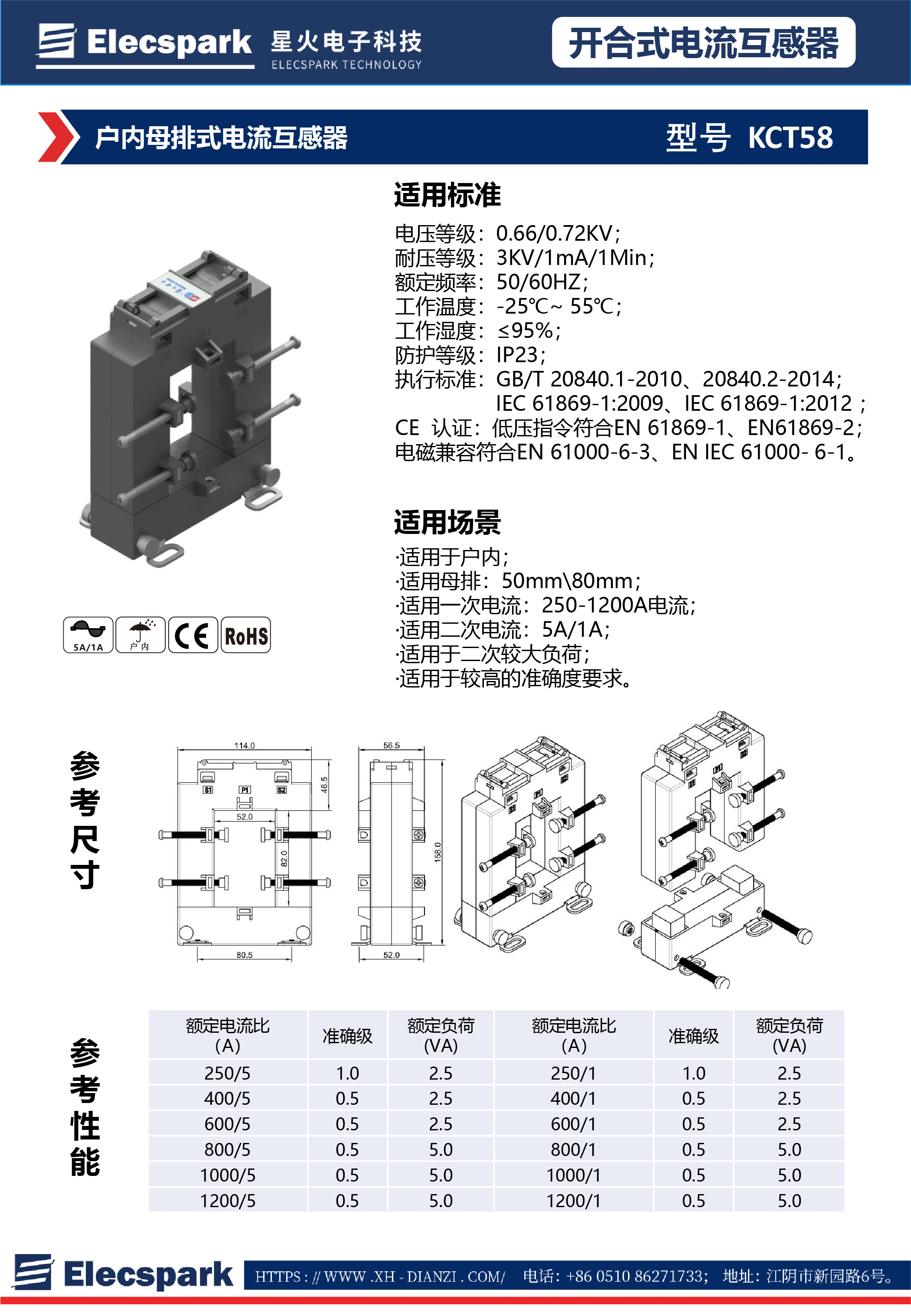 戶內(nèi)母排式電流互感器KCT58