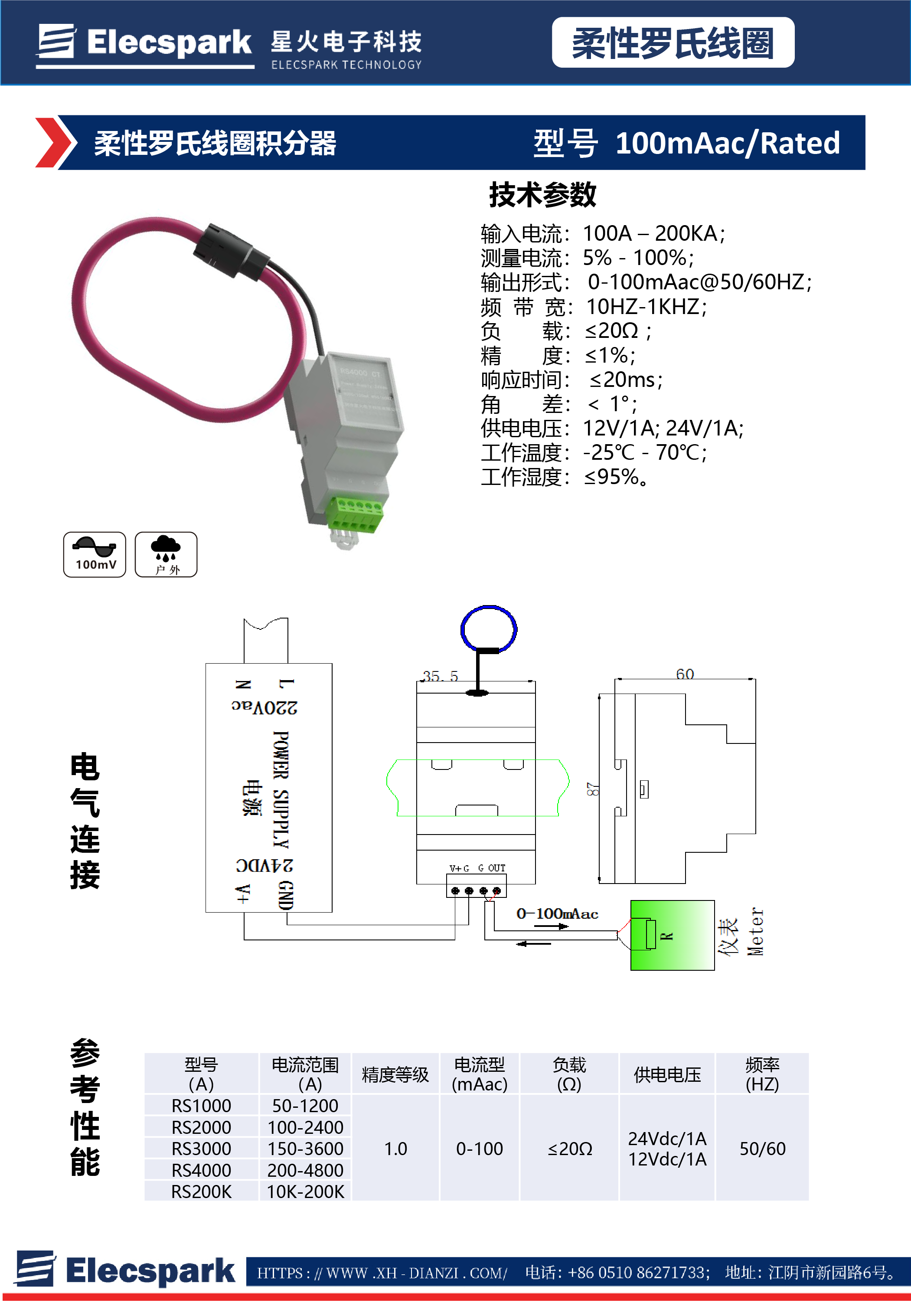 柔性羅氏線圈積分器 100mAac/Rated