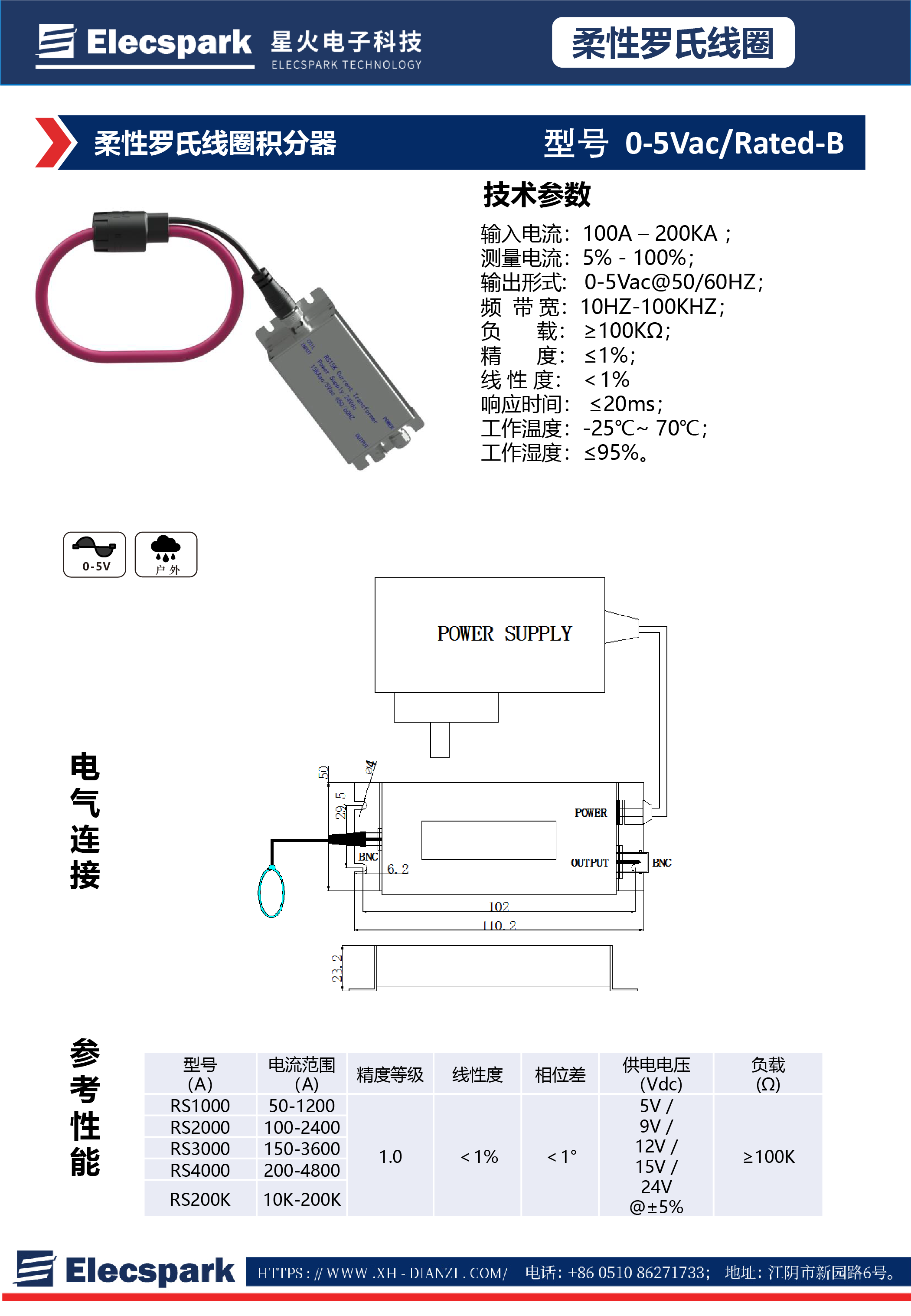 柔性羅氏線圈積分器0-5Vac/Rated-B