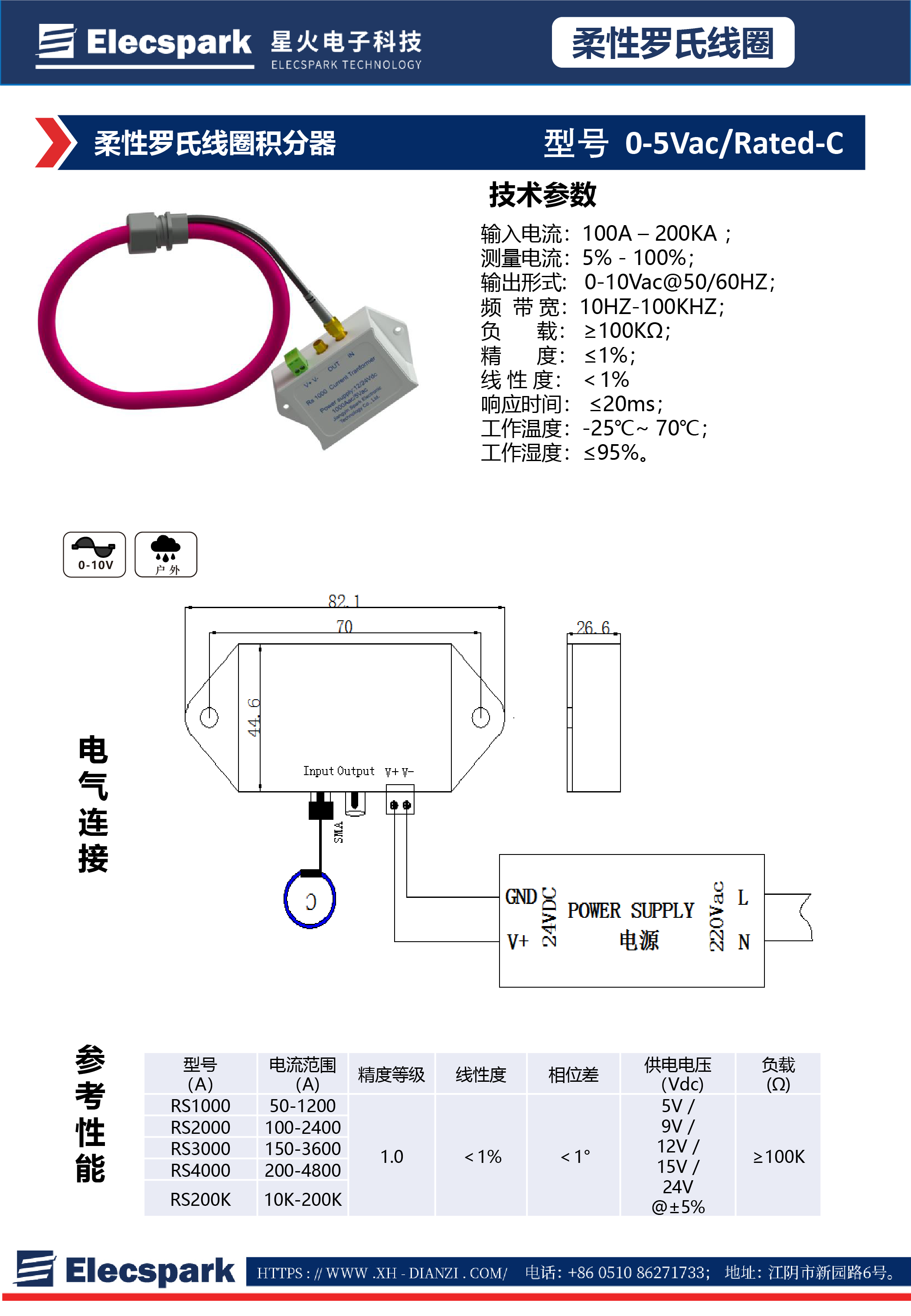柔性羅氏線圈積分器0-5Vac/Rated-C