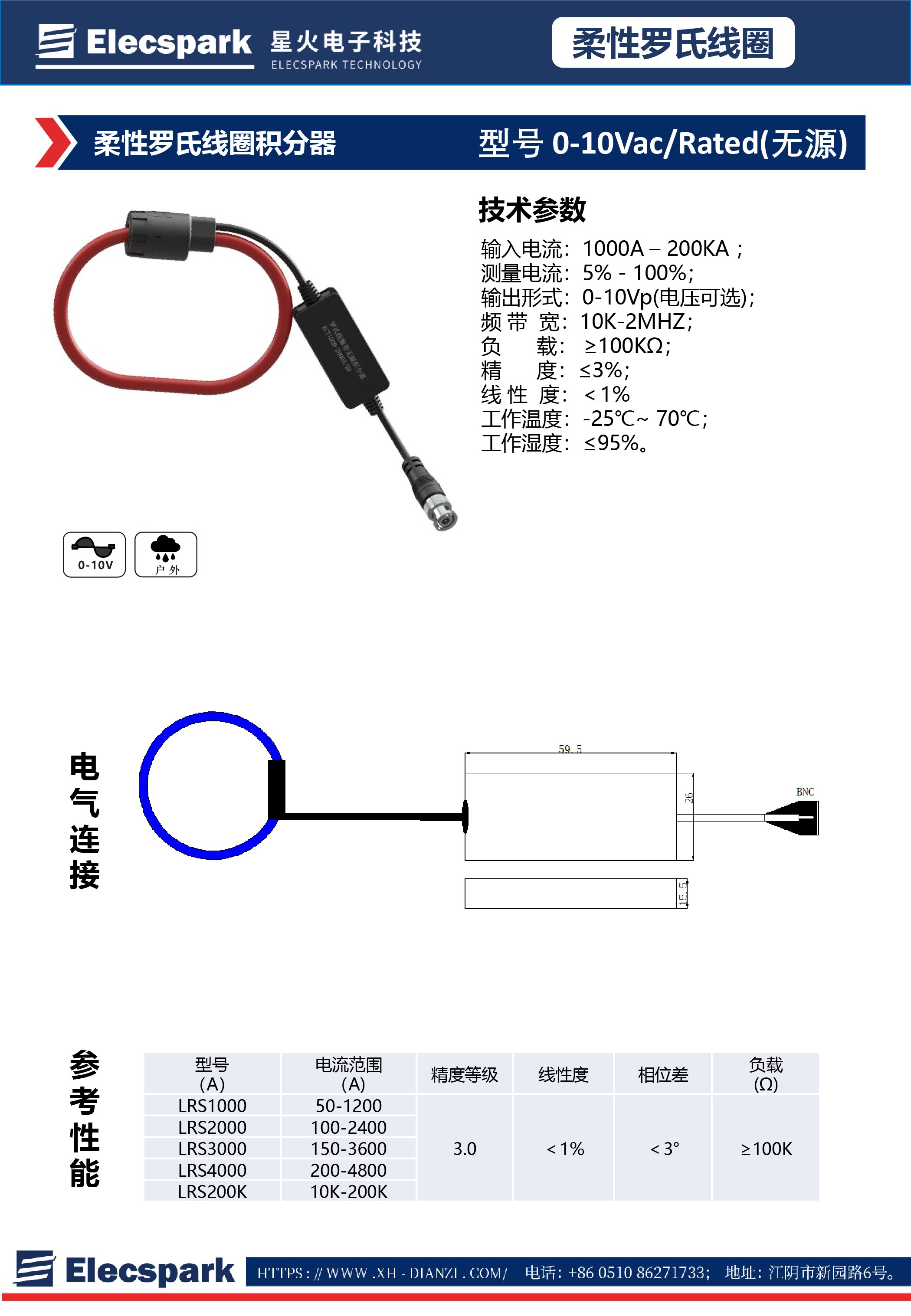 柔性羅氏線圈積分器0-10Vac/Rated(無源)