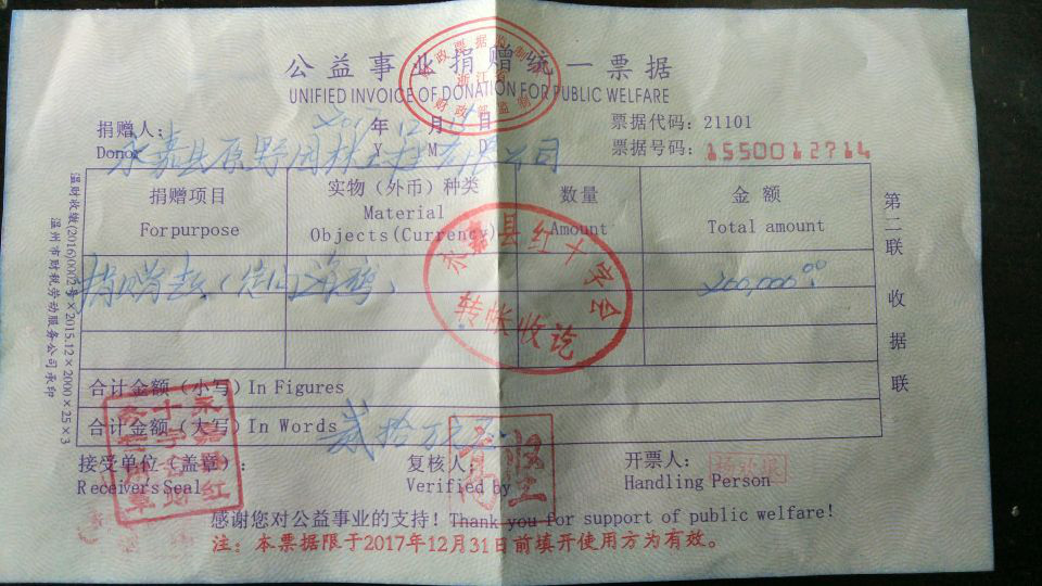 2017年起,原野園林每年向海鷹救援中心捐資20萬元人民幣(大寫貳拾萬元),用于公益救援專項(xiàng)資金。