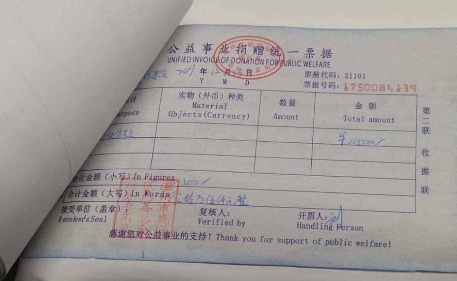 2019年12月向鹿城慈善總會(huì)捐款105000元