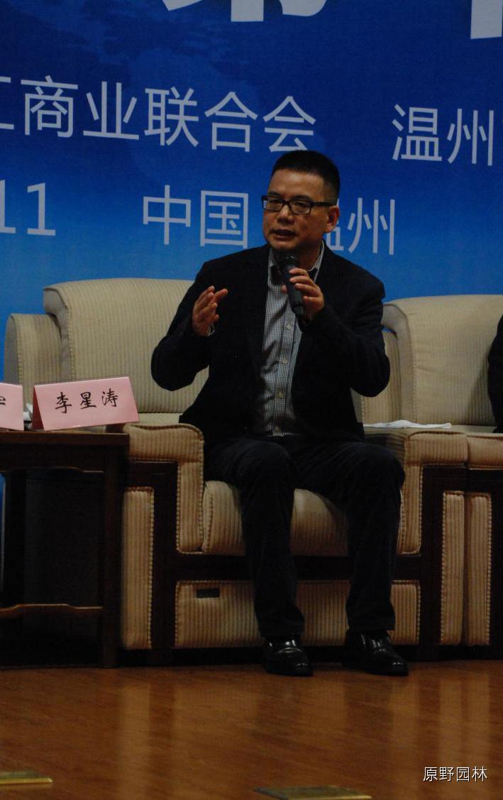 作為上臺交流的嘉賓永嘉縣原野園林工程有限公司董事長李星濤(左四),借用名人名言回答什么是責(zé)任:“松下幸之助講過一句話,企業(yè)的發(fā)展和存在的價值,就是為社會增加福祉。