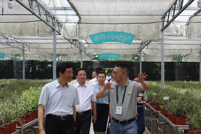 李星濤董事長于原野農(nóng)莊接待了姚司令一行,在李星濤董事長的陪同下,考察團先后參觀了梅園、羅漢松園、紅楠嶺、黃花梨林、水培植物棚、大型會議室、鐵皮石斛棚以及園藝家花卉超市等處,現(xiàn)場考察了農(nóng)莊的各項工作,了解農(nóng)莊現(xiàn)況以及未來規(guī)劃情況——原野響應(yīng)政府生態(tài)農(nóng)業(yè)的號召,借由農(nóng)莊靠近市區(qū)的地理優(yōu)勢,將其從一個單純的苗圃產(chǎn)業(yè)園,整合成為農(nóng)業(yè)公園式的農(nóng)莊……