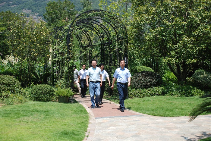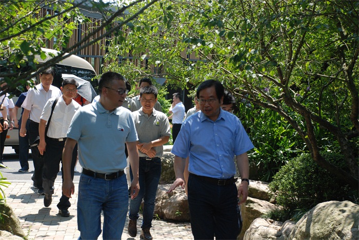 談話中,考察團(tuán)一行來到了梅園的觀景臺,俯瞰梅園,無限風(fēng)光盡收眼底。溫州氣候溫暖,每逢正月,梅花便已悄然綻放,引來游客絡(luò)繹不絕。