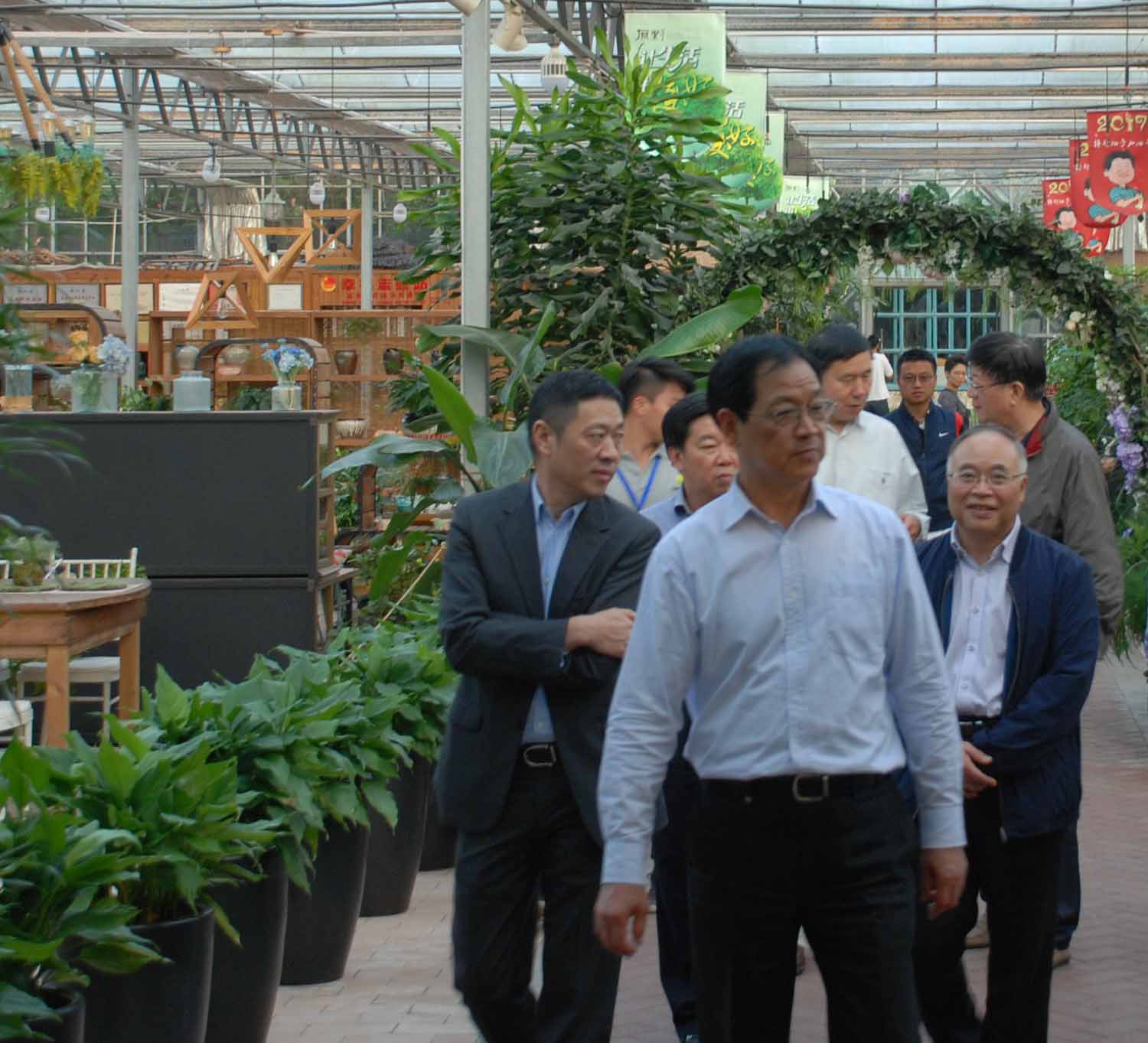 當天下午,孫文友一行走進原野農(nóng)莊,眼前豁然開朗,各種樹木匯成了一片綠海。艷麗奪目的花草,碧綠的樹木,猶如步入了一個綠色的世界。調(diào)研組一行參觀了農(nóng)莊內(nèi)的梅園、羅漢松林、婚慶草坪、特色民宿、鐵皮石斛棚、園藝家超市等場所。調(diào)研組一路走、一路看,一邊詢問原野農(nóng)莊經(jīng)營方面的情況。