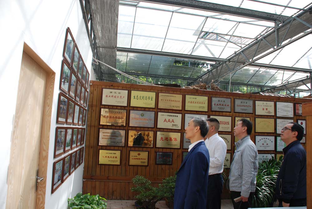 殷志軍一行在原野農(nóng)業(yè)集團董事長李星濤的陪同下,沿著農(nóng)莊梅園步行到羅漢松園、黃花梨林等珍貴樹種的種植區(qū),并參觀了新建特色民宿,鐵皮石斛棚種植區(qū)、園藝家花卉超市。