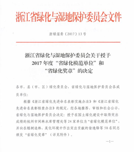 “省綠化模范單位”根據(jù)《浙江省綠化先進命名表彰實施辦法》和《浙江省綠化先進命名表彰核查辦法》的規(guī)定進行評選,經全省各地推薦、審核和社會公示,再由省綠化與濕地保護委員會最終審定后,授予在國土綠化建設中取得突出成績的單位為“省綠化模范單位”。