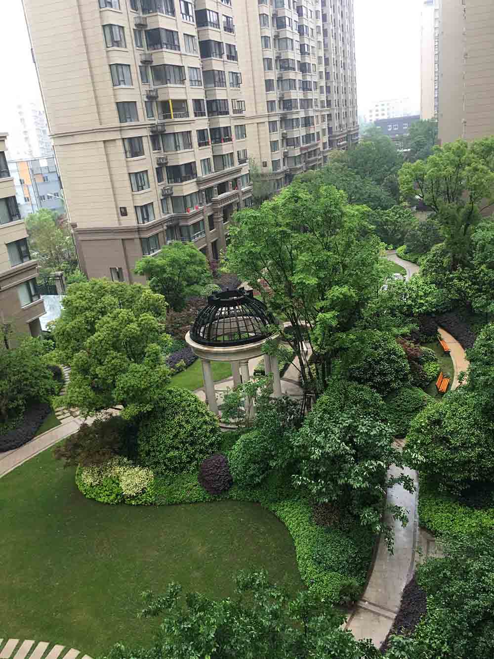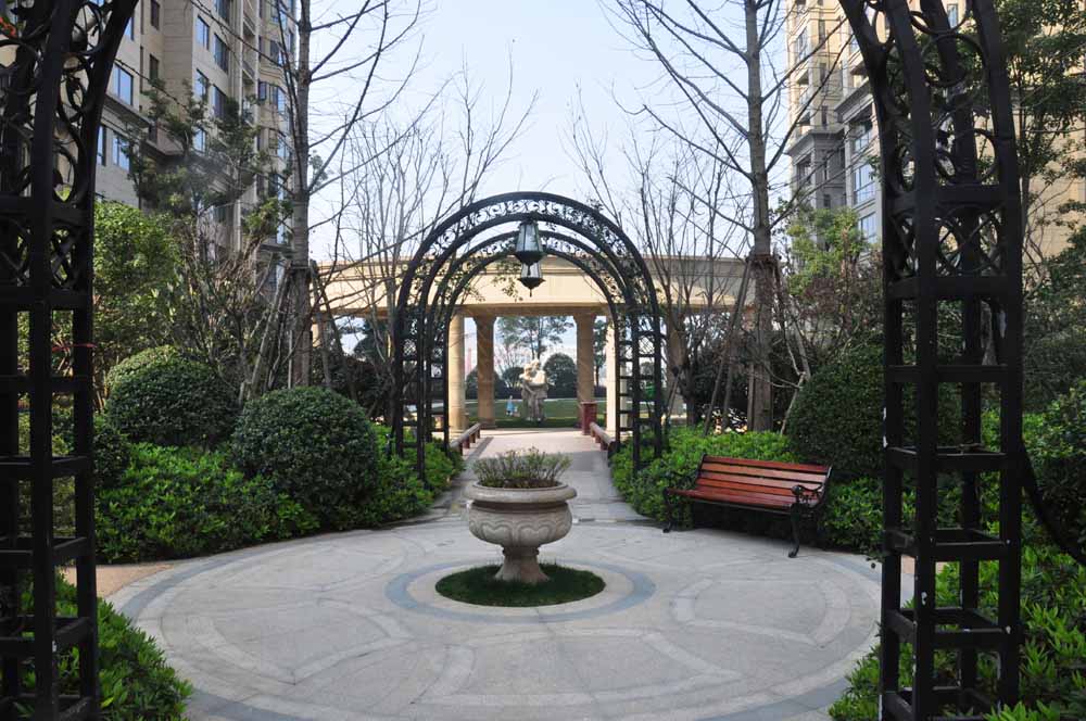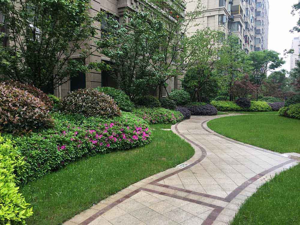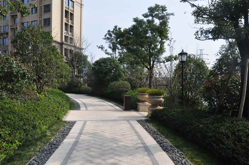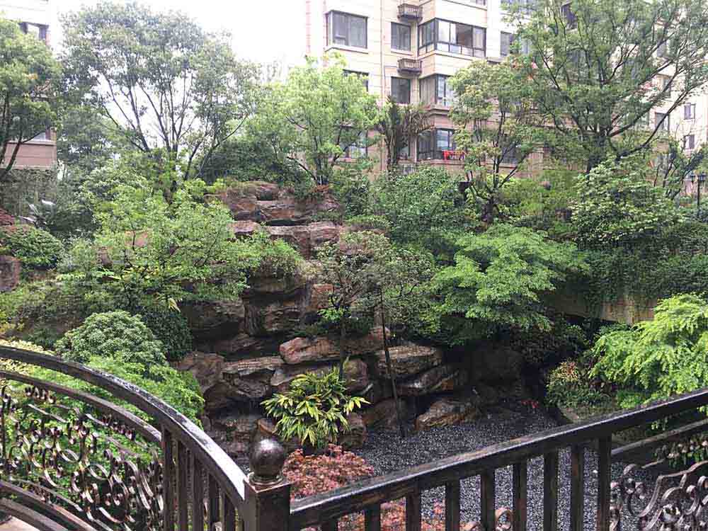原野建設打造的龍灣C-14地塊景觀綠化工程,位于永寧西路北側(cè)、緊靠著越秀中學,綠化面積6076.35平方米小區(qū)建筑屬超高層,人走進去會給人很重的壓抑感,建筑外立面米黃色,屬淡色調(diào),再加上綠化設計要求品種多樣,季相變化豐富,特別是商業(yè)街花壇以及塑石假山瀑布區(qū)的植物,花壇里種植的苗木要求高度、干徑、分叉、冠幅全部一致,通過修剪來達到統(tǒng)一;再者塑石假山瀑布區(qū)的植物,好山好水必定要有好的造型植物來配,所以專門購買了進口紅楓、雞爪槭、樸樹等,再配上本地的中、低層喬木及季節(jié)性灌木及地被植物,使整個小區(qū)一步一景,步移景異,植物季相色彩變化豐富,給人以生活在原生態(tài)大自然中的感覺。