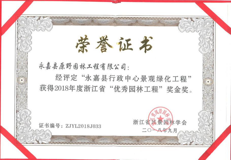喜報:原野建設三個景觀項目獲浙江省優(yōu)秀園林工程金獎!