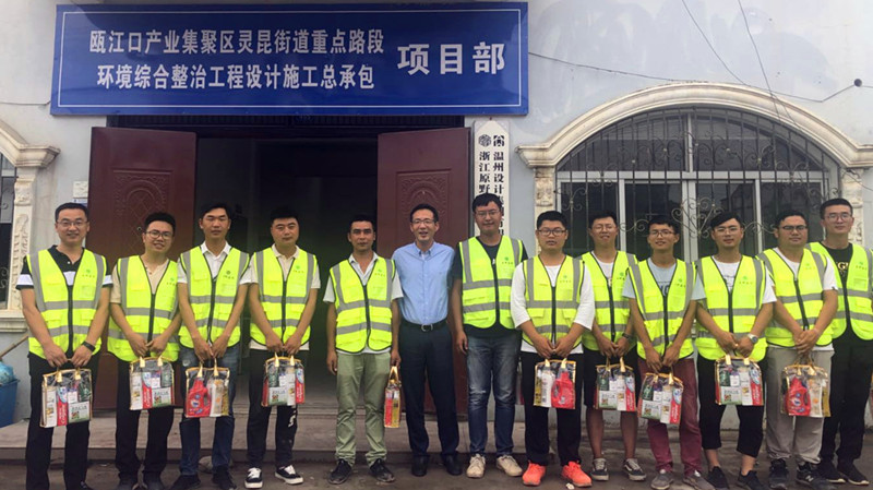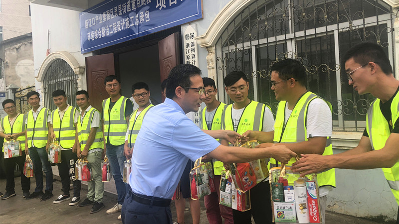7月7日,在溫州項(xiàng)目部現(xiàn)場(chǎng),董事長(zhǎng)李星濤頭戴安全帽,親切地和一線職工們一一握手,給他們送上防暑降溫慰問品,同時(shí)還特意地參觀了職工們工作和生活起居的環(huán)境,詳細(xì)詢問了他們的工作和生活情況。