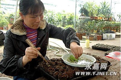 永嘉縣原野園林工程有限公司一直致力于本土樹種的開發(fā),我市提出綠化主推本土樹種后,該公司把無柄小葉榕做為突破口,運(yùn)用先進(jìn)的環(huán)境調(diào)控技術(shù),采用種子容器育苗,解決無柄小葉榕大批量繁育種苗問題,目前已經(jīng)成功地培育出10萬余棵無柄小葉榕。圖為工作人員正在進(jìn)行容器育苗。記者汪學(xué)斌