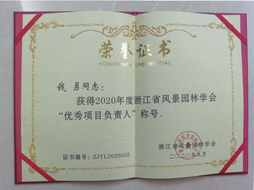 獲浙江省風(fēng)景園林學(xué)會(huì)優(yōu)秀管理獎(jiǎng)(養(yǎng)護(hù)管理類)