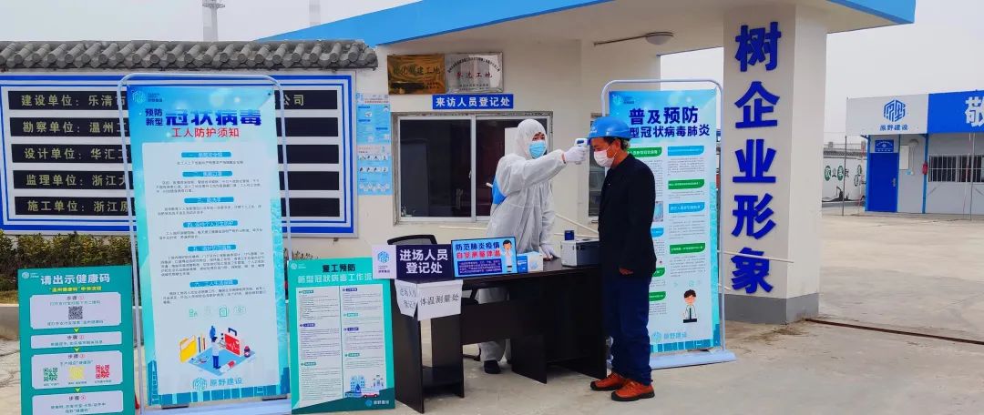 人員進(jìn)入工地,亮溫州防疫碼+測溫+戴口罩+登記