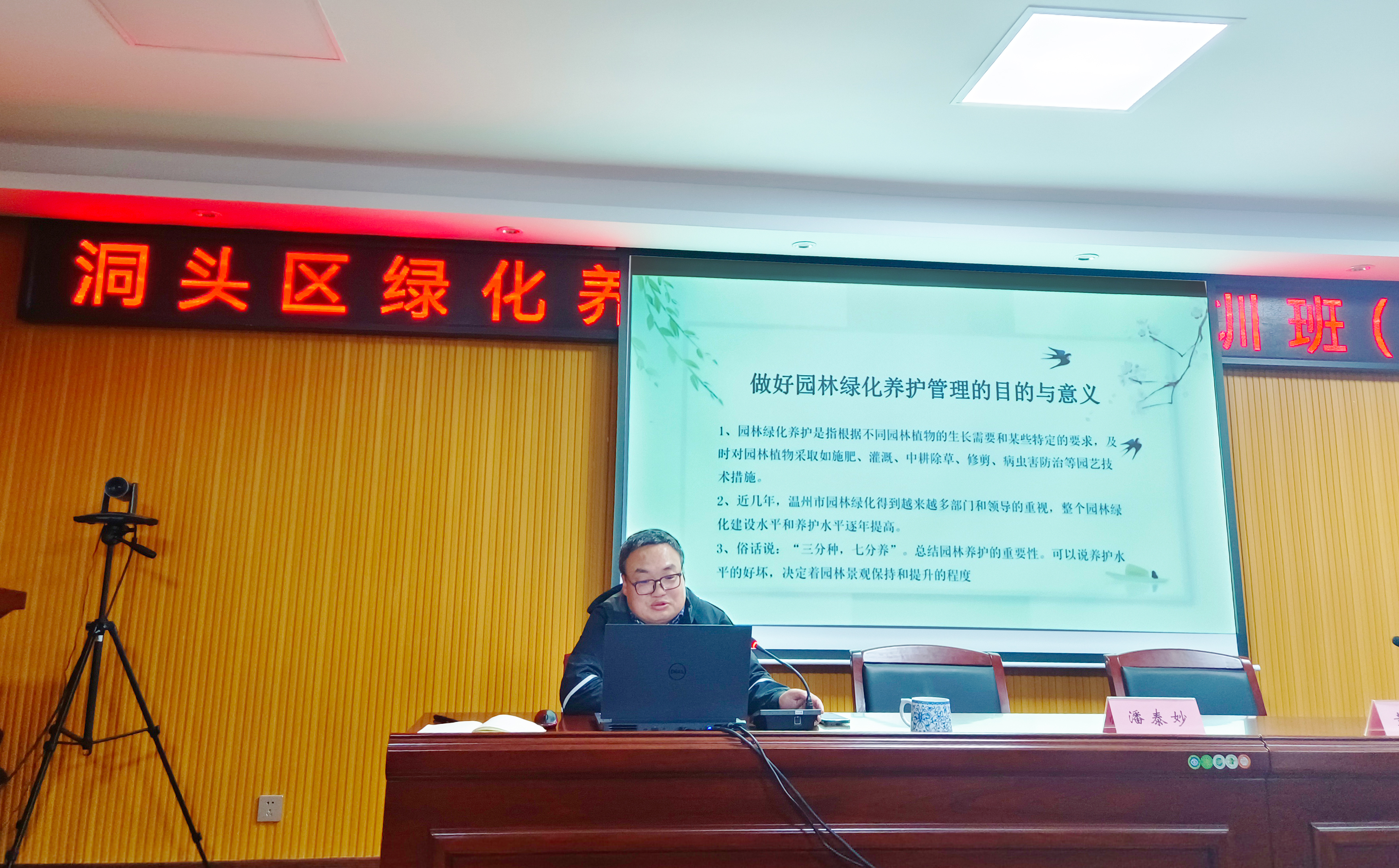 3月27日,洞頭區(qū)綜合行政執(zhí)法局舉行第一期“綠化養(yǎng)護(hù)業(yè)務(wù)知識(shí)”專題培訓(xùn)班,浙江原野建設(shè)有限公司副總經(jīng)理、總工程師潘泰妙受邀做專題講座。洞頭區(qū)資規(guī)局、區(qū)住建局、區(qū)農(nóng)村農(nóng)業(yè)局、北岙街道、大門鎮(zhèn)、東屏街道、元覺街道、霓嶼街道、鹿西鄉(xiāng)、區(qū)城發(fā)公司、區(qū)旅發(fā)公司、區(qū)資源開發(fā)公司等相關(guān)單位綠化項(xiàng)目科室負(fù)責(zé)人及技術(shù)骨干等參加培訓(xùn)。