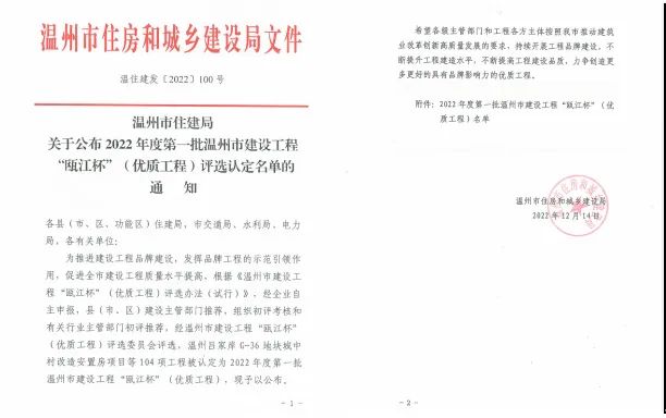 原野建設(shè)獲2022年度溫州市市政行業(yè)“一先一優(yōu)”榮譽