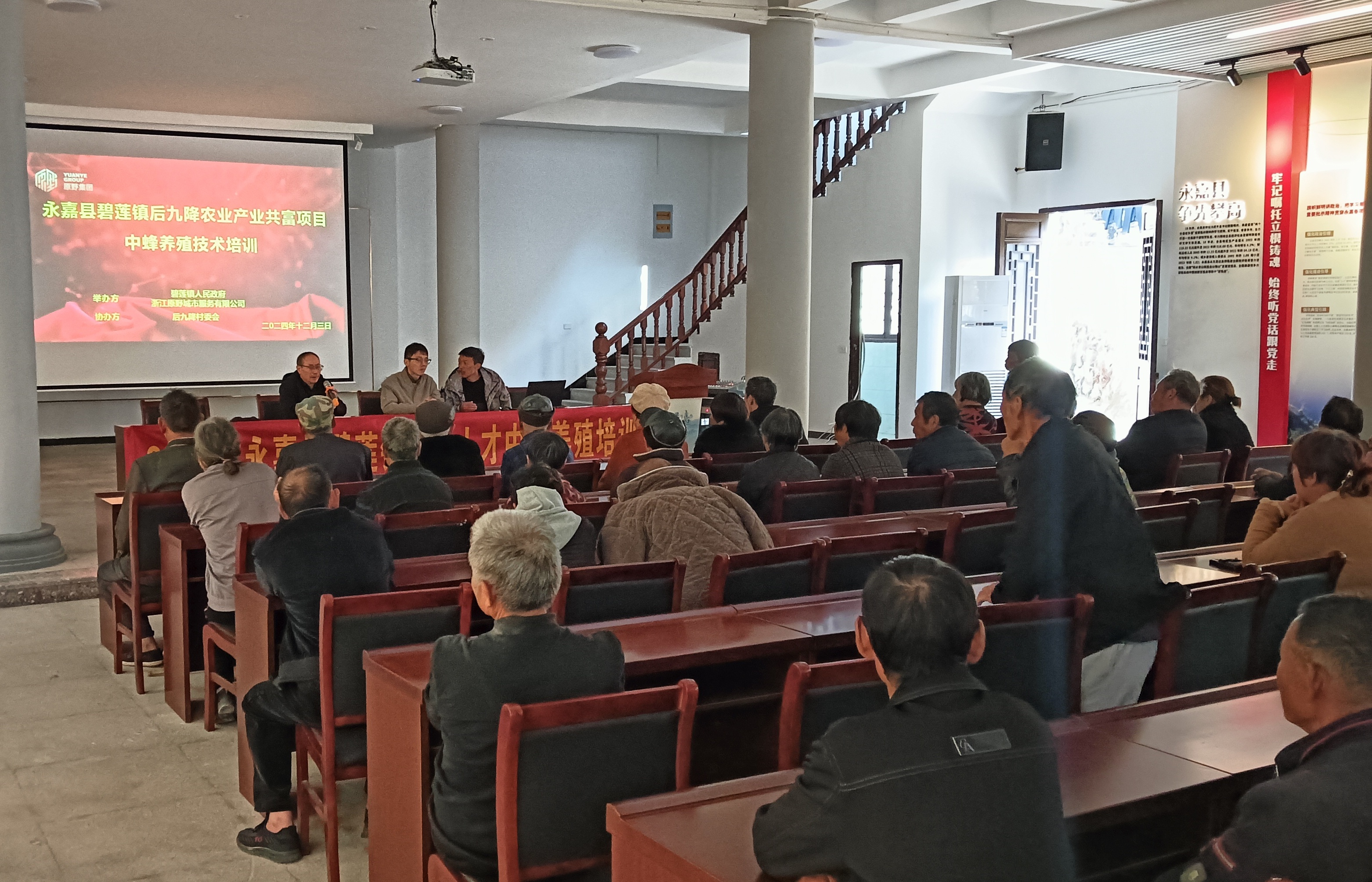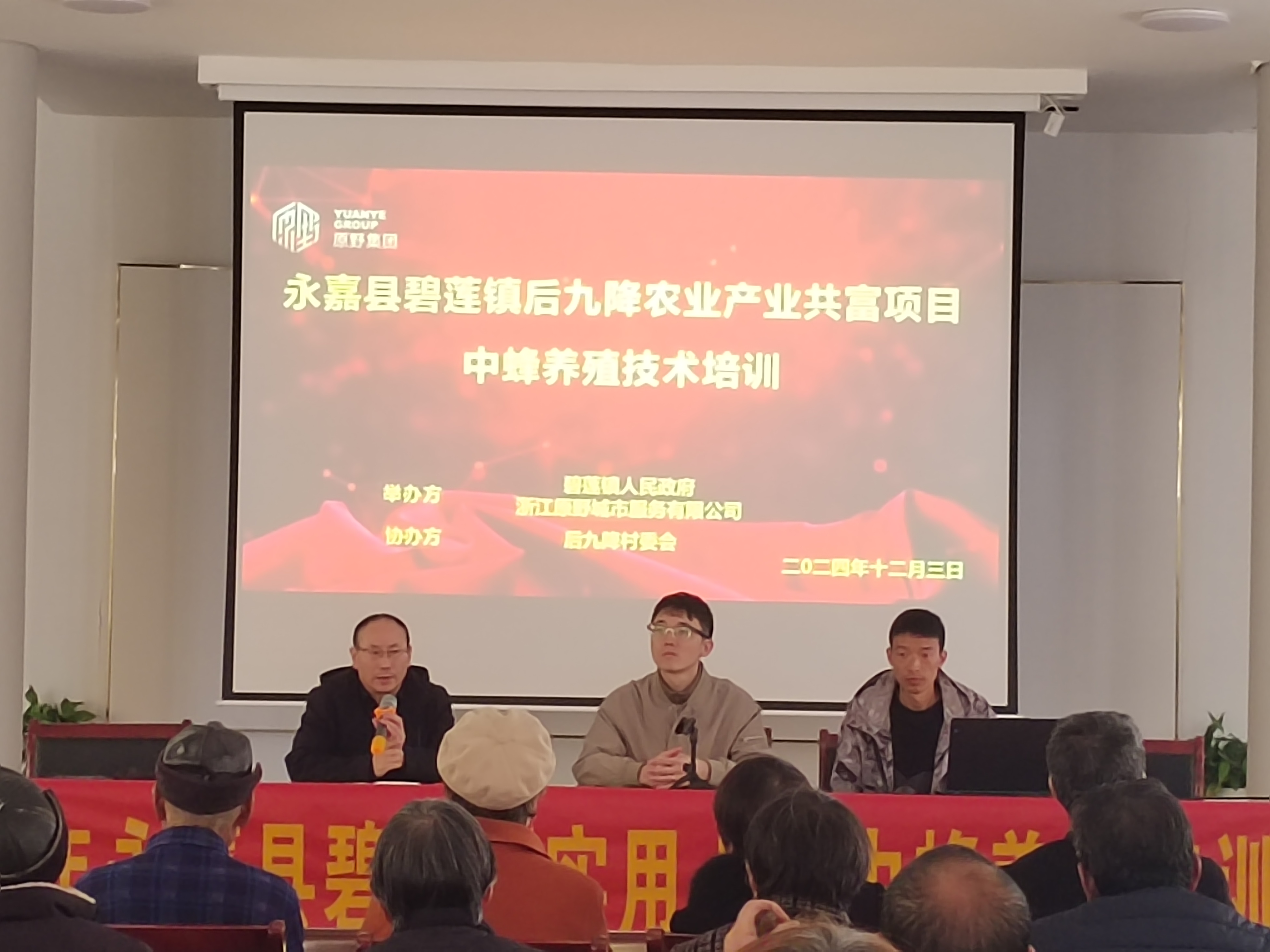 12月3日,“高素質(zhì)農(nóng)民養(yǎng)蜂技術(shù)培訓(xùn)班”在后九降文化禮堂舉行。碧蓮鎮(zhèn)人民政府和原野集團(tuán)子公司浙江原野城市服務(wù)有限公司共同舉辦,后九降村委會協(xié)辦,中蜂的蜂農(nóng)養(yǎng)殖戶40余人參加培訓(xùn)。