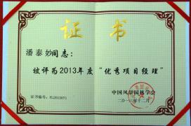 潘泰妙獲園林工程“優(yōu)秀項(xiàng)目經(jīng)理”稱號(hào) -