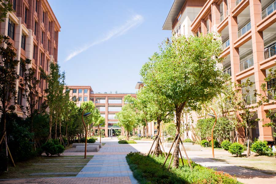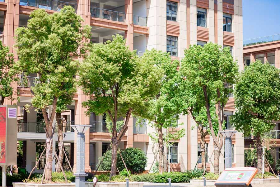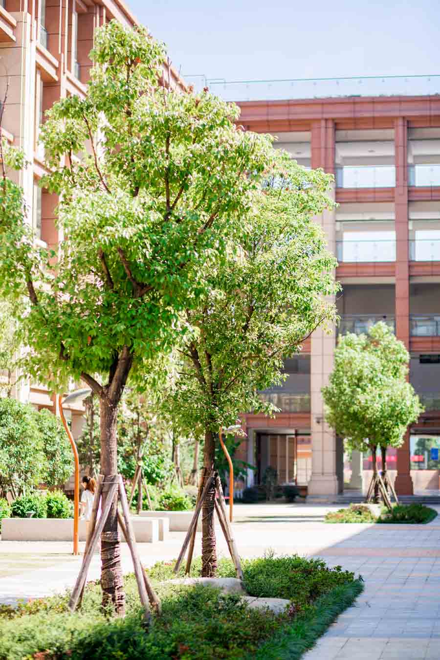 甌海區(qū)外國語學(xué)校一期、二期室外附屬及運動場工程,本工程入口兩側(cè)景墻, 是本工程的一大亮點,采用花崗巖干掛雕刻,景墻上由潘海波校長書中題字,內(nèi)容為“每一個人都有自己發(fā)展的優(yōu)勢”,告知每個學(xué)子們,每個人都是獨一無二的,每個人都有自己發(fā)展的優(yōu)勢,學(xué)校的初衷,也是希望每個學(xué)子們都能成為祖國的棟梁。 學(xué)校共分為四大園,每個園都有自己的特點,樵園的廊架、膠粘石(樹枝圖),讀園有馬賽克弧形坐凳,耕園整石座凳,漁園的船型座椅、膠粘石(海鷗圖),都各有特色,展示了園林景觀的自然美。 運動場標(biāo)準(zhǔn)的400m跑道,設(shè)有籃球架、排球架、足球門、四格肋木、雙杠單杠等,是學(xué)生早操和體育課的場所,也是甌海區(qū)中小學(xué)體育比賽的最佳場地。 植物突出園林景觀特色,以本地樹種為主,適當(dāng)引入園林觀賞性樹種,落葉樹種和常綠樹種自然搭配,高低錯落,灌木與地被的完美配置,充分展現(xiàn)了自然景觀。