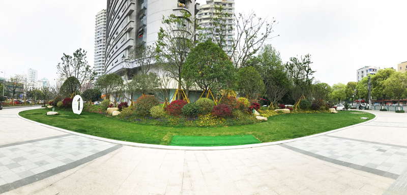 新城大道道路清潔,五條綠化隔離帶清晰明了,原有保留的大香樟蒼蔥濃郁,新種綠化帶秀美而富有色彩變化,形成鮮明對(duì)比。道路景觀節(jié)點(diǎn)上骨架大喬木有樸樹、杜英、含笑,中間層有桂花、櫻花,下層各種球類植物及三角梅,底層色帶苗及時(shí)令花卉,前面留出大面積草坪,結(jié)構(gòu)清晰,色帶豐富。