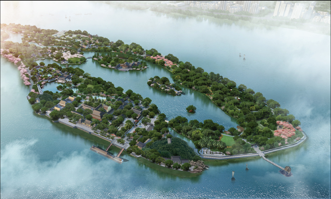 在景觀(guān)改造上,該工程以“以詩(shī)入畫(huà),以畫(huà)成景”為設(shè)計(jì)思路,包含核心文保區(qū)、海淀朝霞、榕林詩(shī)徑、湖心禪居、甌江山水詩(shī)路、禪意慧園、荷風(fēng)柳風(fēng)、清輝浴光(宋園)、永嘉山水園九大區(qū)塊,以打造景致不同的特色區(qū)域。在文化提升上,該工程基于江心嶼自身深厚的歷史底蘊(yùn),主要立足于文化的二次挖掘和提升。