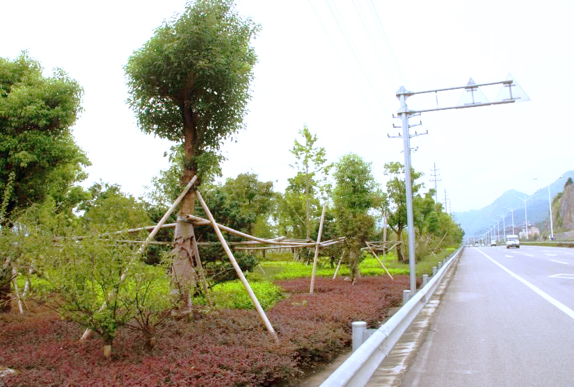 本工程位于41省道永嘉甌北段,是進(jìn)入永嘉縣縣城和國家著名風(fēng)景區(qū)楠溪江的主要道路,是體現(xiàn)永嘉形象的重要窗口。現(xiàn)狀主要為農(nóng)田土、廢土等,地理位置較低,施工時(shí)主要采用回填種植土,滿足綠化苗木種植所需最低種植土,并在外沿設(shè)置擋土墻,防止土壤流失。41省道綠化工程總綠化面積約70000平方米,(包括上塘段30000平方米,甌北段40000平方米),總造價(jià)約2835萬元。