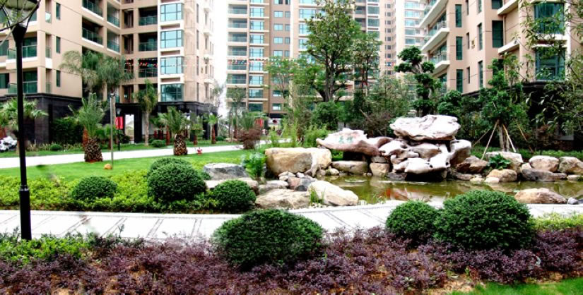 工程景觀綠化總面積約25000平方米(包括室外給排水、室外電氣、噴泉、亭廊、木棧道、小橋、跌水、假山、景觀小品、道路、廣場(chǎng)景觀、綠化等),造價(jià)約2400萬元。