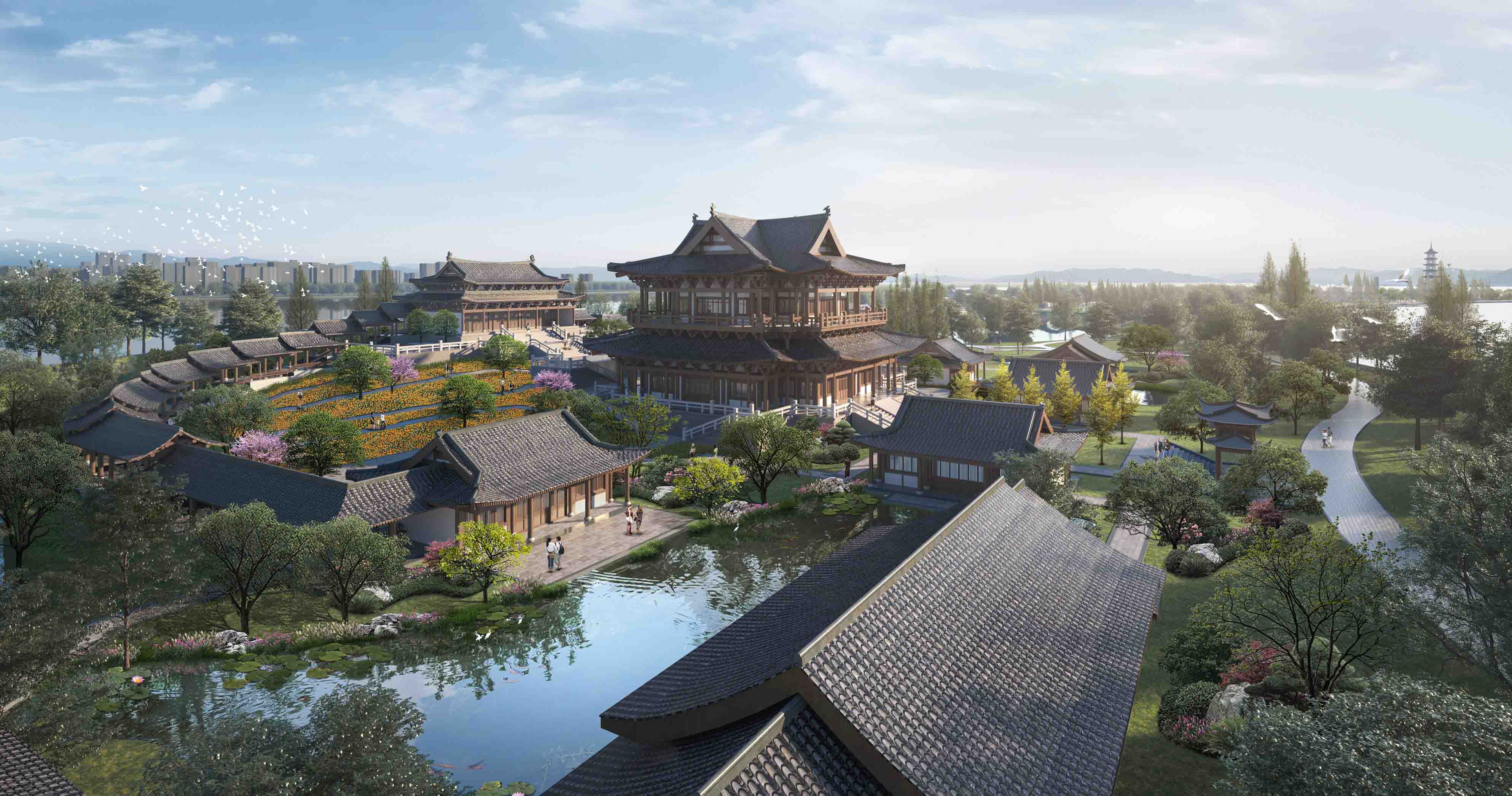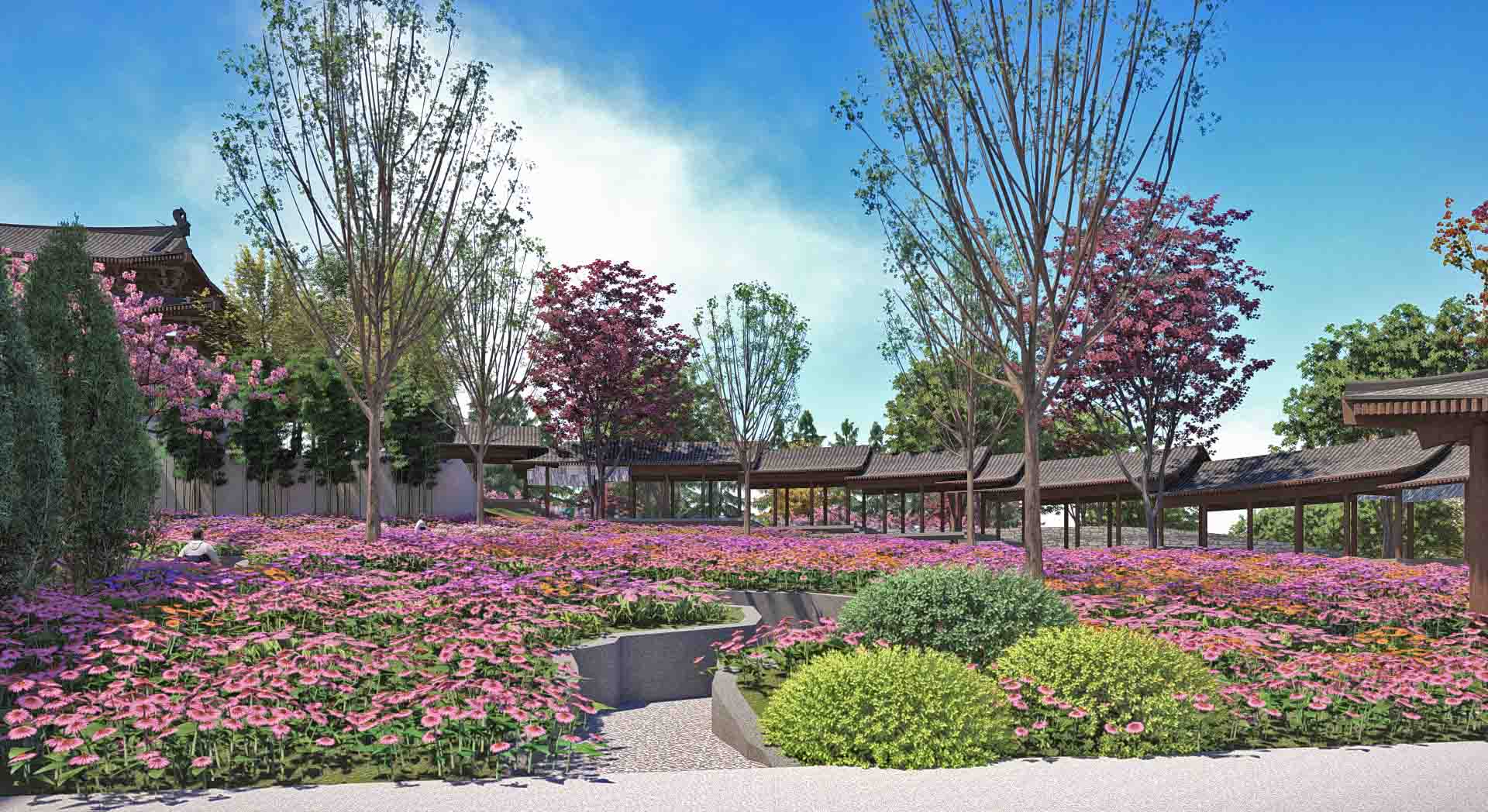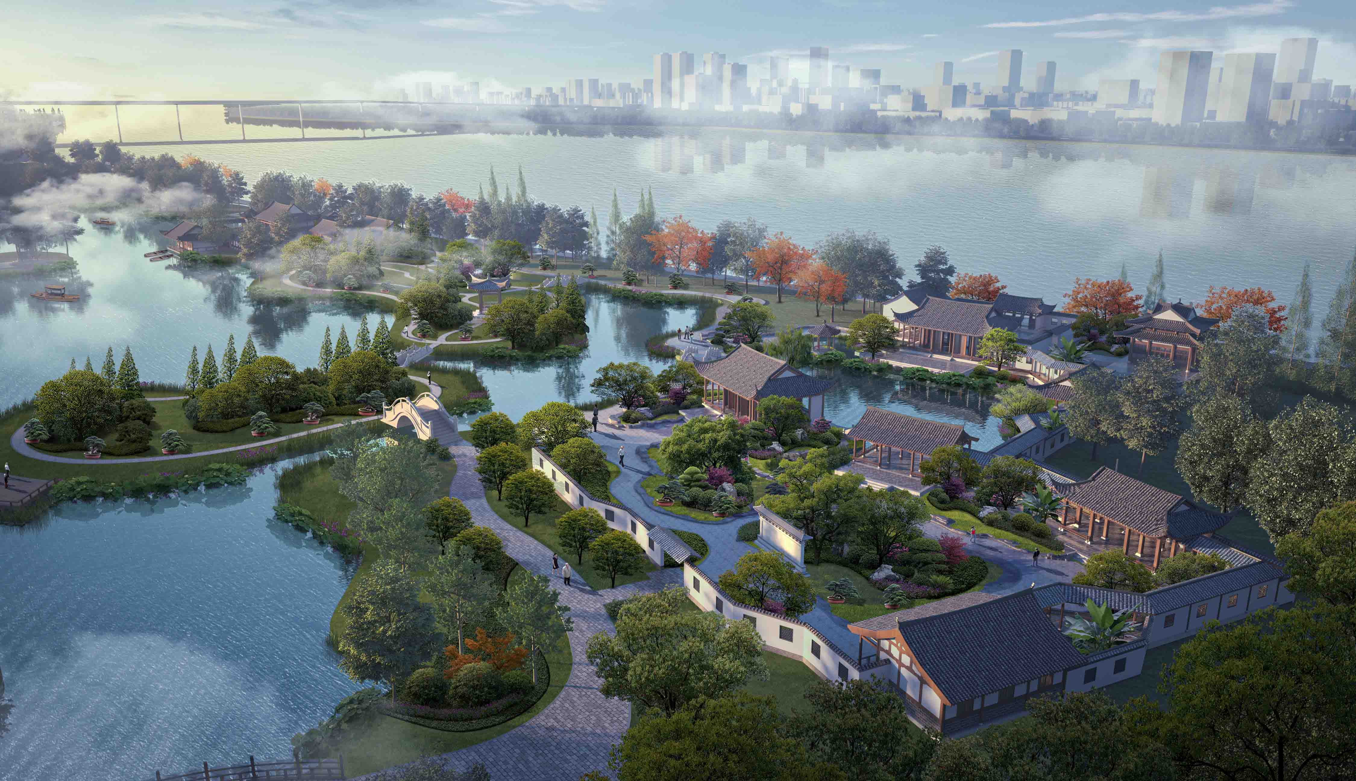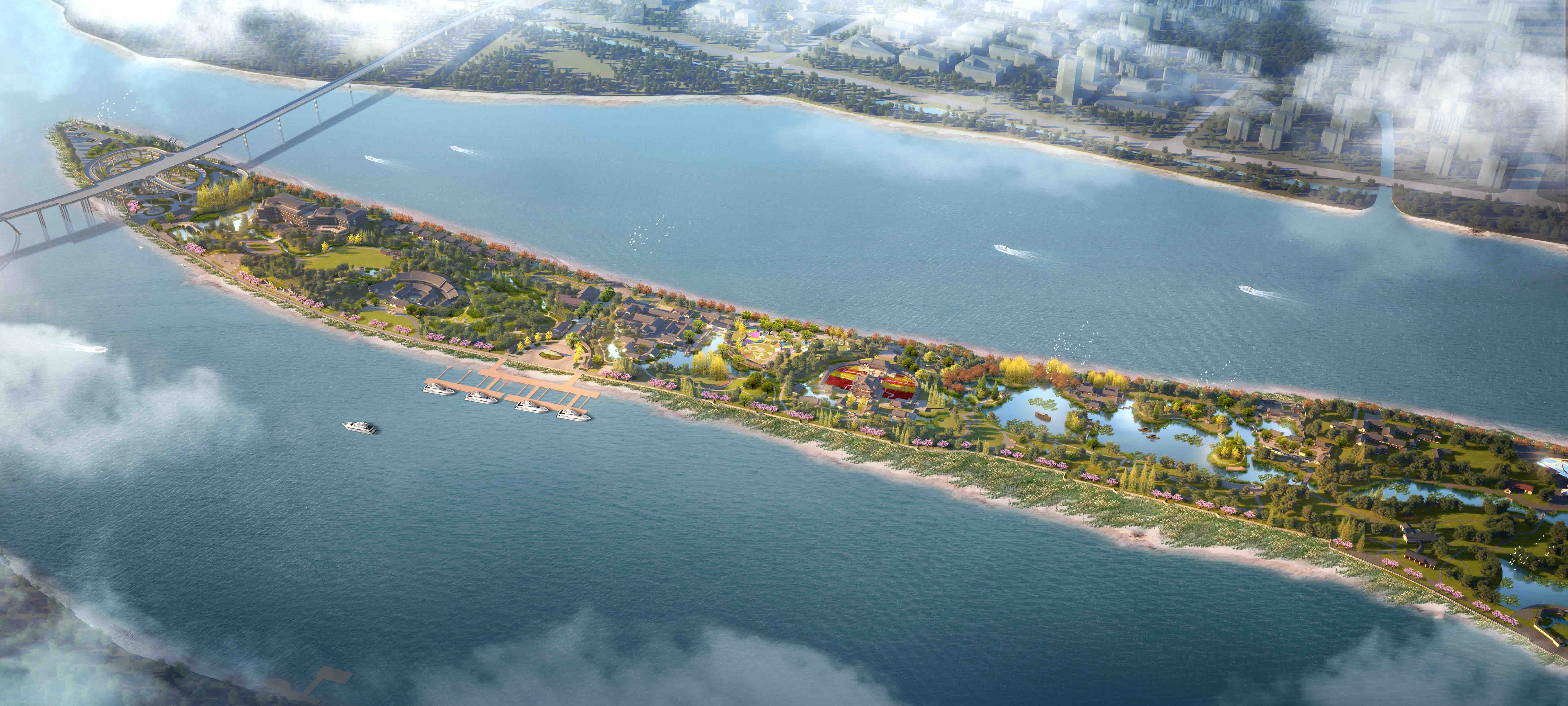 項(xiàng)目圍繞詩、禪、航標(biāo)三個(gè)關(guān)鍵詞,打造江中有嶼、嶼中有湖、湖中有島、島中有園、園中有堤、長(zhǎng)堤曲直的現(xiàn)代山水園林。本工程突出古典詩歌文化,提升園林山水景觀,不僅注重優(yōu)化靜態(tài)的自然山水、人文建筑,也強(qiáng)調(diào)將活態(tài)的花草樹木作為景觀的一部分。